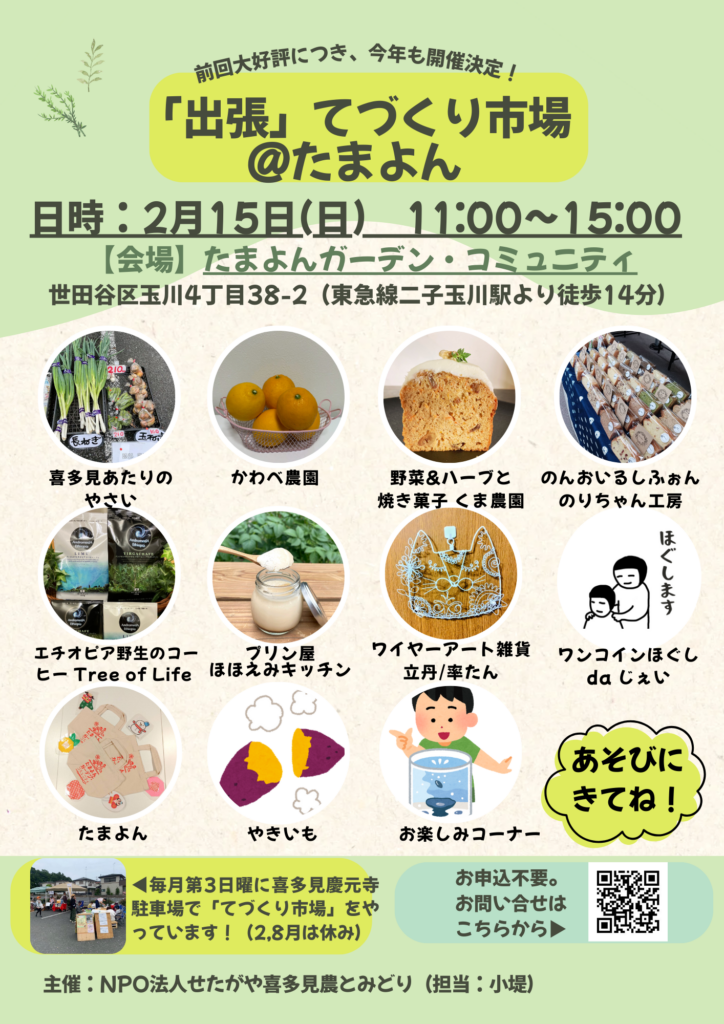 2026.2.15 2回目となる、『出張てづくり市場@たまよん』を開催しました。